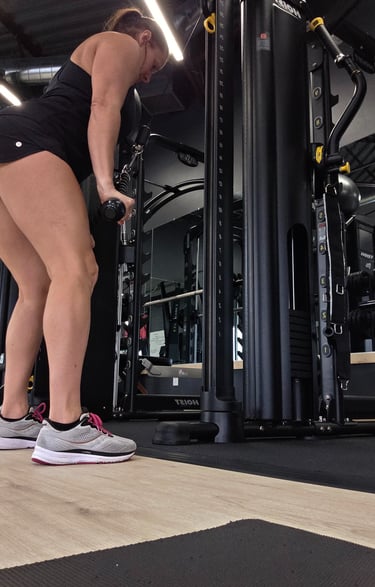 My name is Amy Garbacz, Founder and Trainer at Tone. To be honest I never set out to be a Personal Trainer or a certified sport and exercise nutrition coach. I kind of fell into it 15 years ago after working out with so many different friends just for fun. I would have the workouts so meticulously planned out that a few of them asked when I was going to start training people for a living. With a major in Chemistry/Math and Secondary Education it was an easy transition. I was lucky enough to have gotten a Full Division 1 Scholarship for Track and Field which is where I gained most of the knowledge that I still use today. I have worked in a couple gyms and a bit on my own and I picked up some good things from both and always took mental notes in the hopes of opening the perfect space one day. During Covid when all the gyms were closed I bought this beautiful hunk of metal and fell in love with it. I have never worked with a more compact versatile piece of gym equipment. I didn't think I would be comfortable teaching a 86 year old woman how to bench press but it happened. I never thought I would get the opportunity to open a training studio and get to do what I love best. To teach people the "how" and "why" of working out. Why lifting to put on muscle is literally the fountain of youth. Everything just falls into place after you pick up a weight for the first time or the first time in a long time. Instantly: mood and energy increase, then better sleep follows it makes you want to eat better which makes your sleep and workouts even better. Then your metabolism increases and you naturally burn more calories at rest. Lets not forget about fighting osteoporosis, increasing HGH, helping with insulin resistance, brain fog, balancing out hormones naturally. Oh wait you will also lose weight and look better naked.